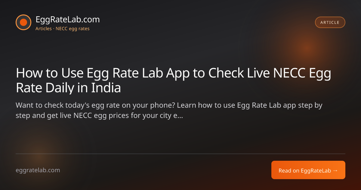Egg Rate Lab is a free app that shows you the live NECC egg rate for all major cities across India every day. It is available for both Android and iPhone users. The app is simple to use, loads fast and gives you accurate egg prices updated every morning.